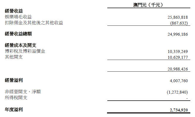 註 2:「貴賓賭枱贏額」是指保留並記錄作為娛樂場收益之貴賓分部轉碼數。